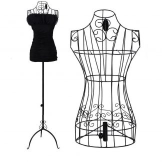 1x Female Vintage Mannequin Black Wrought Iron Wire Adjustable H