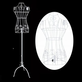 1x Female Vintage Mannequin White Wrought Iron Wire Adjustable H